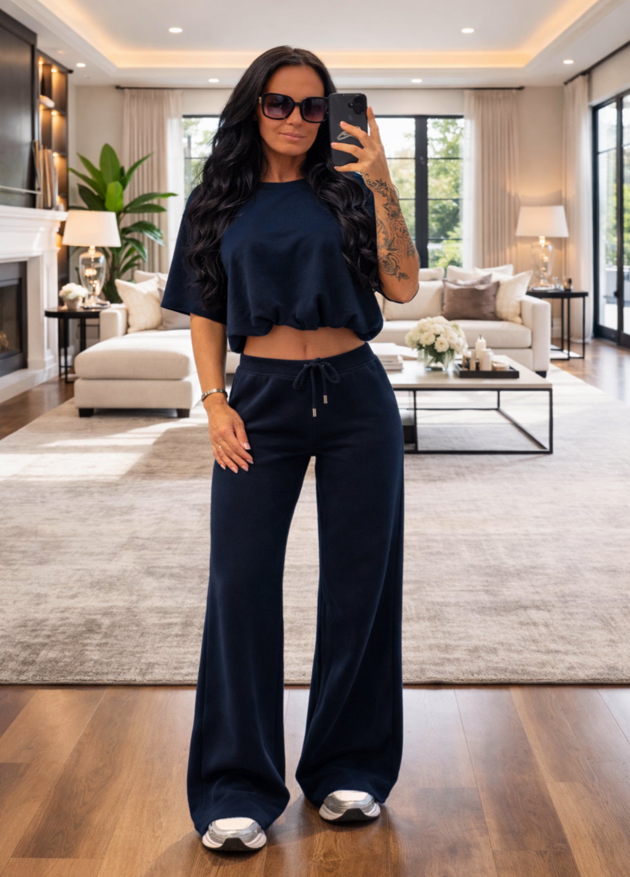 Where comfort meets confidence. This two-piece lounge set features a softly structured cropped top and relaxed wide-leg trousers for a flattering, easy fit. Perfect for dressing up or down — refined, relaxed, and ready for anything.
